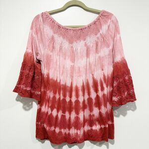 Studio West Boho Peasant Orange Pink Tie-dye Bell Sleeves Too Women Size Medium. Condition is Pre-owned - Good.