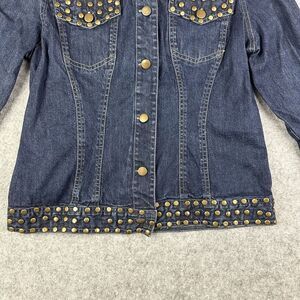 Studio West Denim Jean Jacket Womens M Blue Dark Wash Studded Western Trucker*