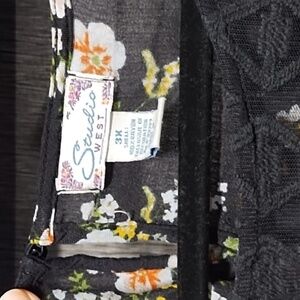 Studio West Top Blouse Floral Puff Sleeves Decorative Neck Print Size 3X Office