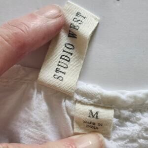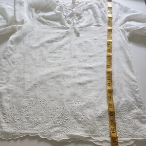 This top is made from comfortable and breathable white cotton and features a delicate eyelet design. Perfect for a casual day out or dressed up for a special occasion.
