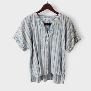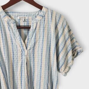 Studio West Womens Cotton Gauze Blue Stripe Blouse Top Large Boxy Oversized Boho