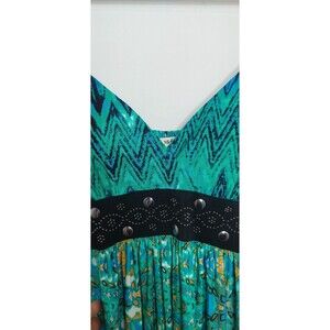 Studio West Women's Size Small Dress Maxi Sleeveless Green Tropical Belted