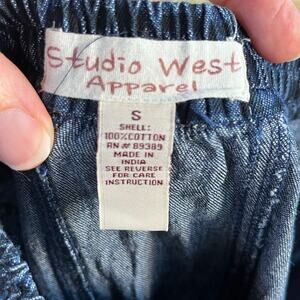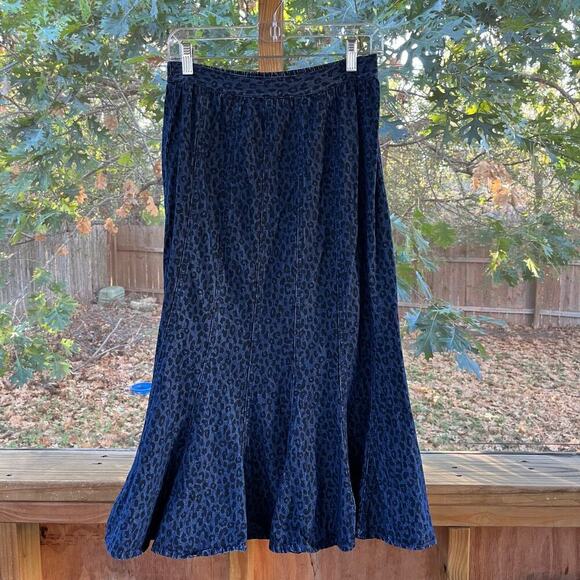 Studio West Women's Vintage Leopard Print Blue Denim Midi Skirt Size S
