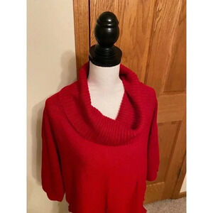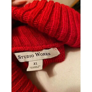 Studio Works 1X Pullover Sweater Cowl Neck 3/4" Sleeve Cable Knit Acrylic Red