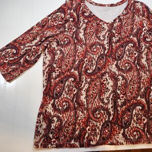 This Studio Works T-shirt is perfect for any plus-size woman looking for a comfortable and stylish top. The V-neckline and short sleeves make it a great option for warmer weather, and the size 3X ensures a comfortable and flattering fit.