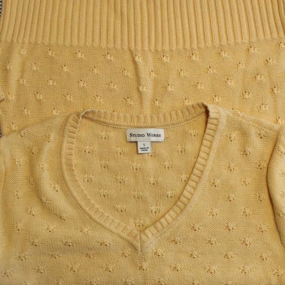 Studio Works $48 Small Golden Yellow Pointelle Knit V-Neck Pullover Sweater