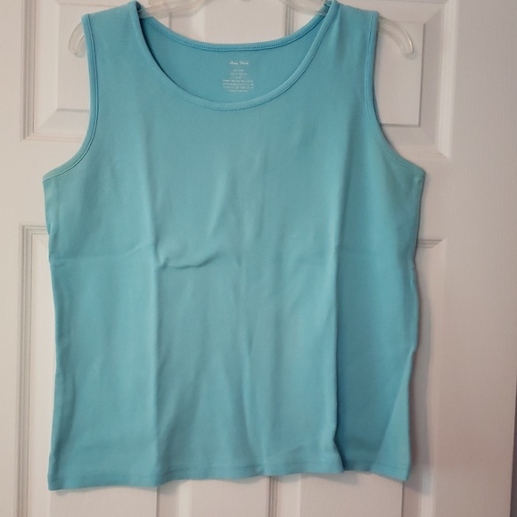 Basic tank top by Studio Works. Color is a pretty sky blue. Measures 23 inches shoulder to hem and 19 inches across underarms. Shirt wore a handful of times, in very good condition.