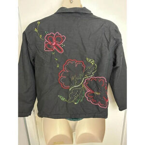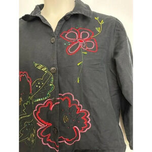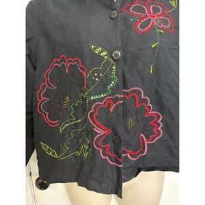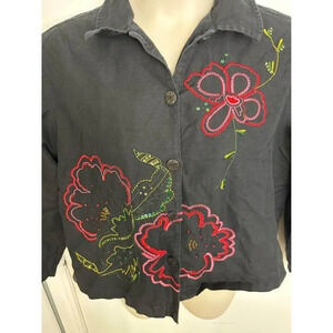 Studio Works Black Embroidered Sequin Flower Top Jacket Size Large #0354
