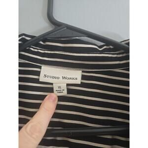 Studio Works Black Striped Pockets Long Sleeve Button Down Shirt Womans Size XL. Pre-owned