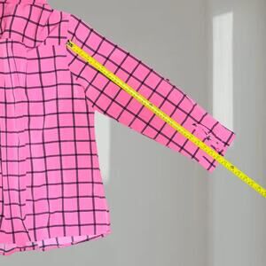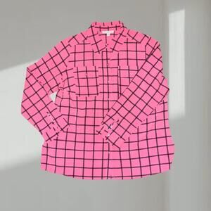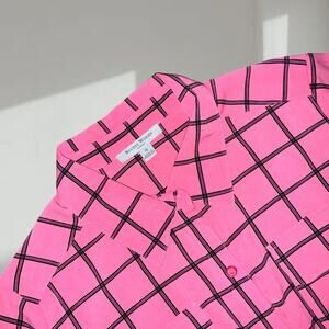 Studio Works Blouse – Pink/Black Grid Print Button-Up (XL)