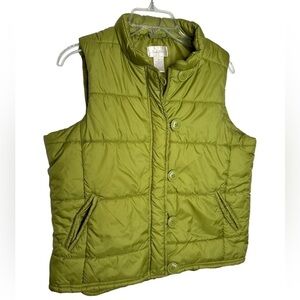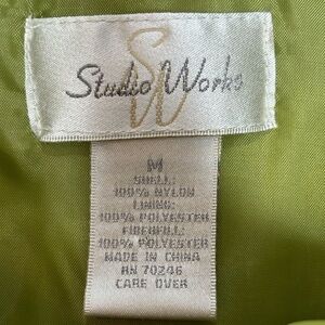 Studio Works Chartreuse Green Puffer Vest Medium 2 Pockets Great laying Piece.