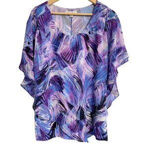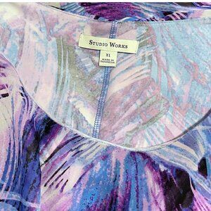 Studio Works Fairy Top Womens Size XL Purple Chiffon Overlay Light Office Artsy