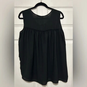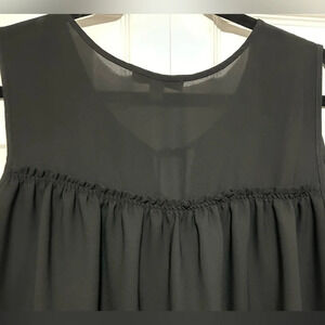 Studio Works Floral Embroidered Hemline Black Sleeveless Top Tie front Sz Large