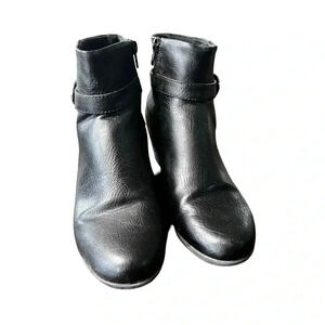 Studio Works Gelna ankle boots, black, faux leather, side zip, 2” heel, preowned