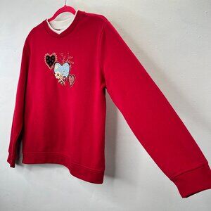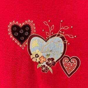 Studio Works Heart Applique Sweatshirt M Red Beaded Double Neck Grandma Core