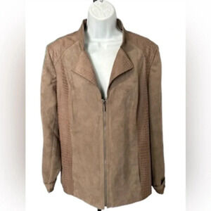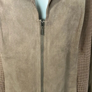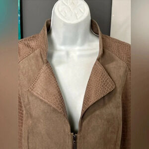 Studio Works Jacket Faux Suede Lined Faux Reptile Trim Women’s Size 16