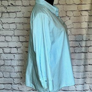 Studio Works Light Blue Check 3/4 Sleeve Wrinkle Free Button Down Sz L EUC