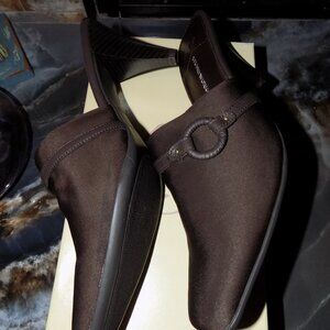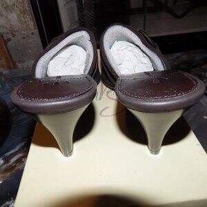 Studio Works Lucy Dark Brown Stretch Fabric Mule Heels Size 9 Women's NEW