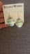 Vibrant teardrop earrings with chevron design in blue, green, and yellow.