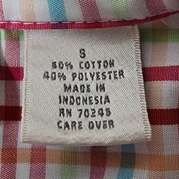 Studio Works No Iron Plaid Button Down Multi Color Blouse 3/4 Sleeve W Small