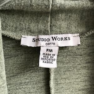Size Petite Medium Studio Works Open Front Sharkbite Cardigan Sweater Knit Plush Cozy Fall