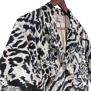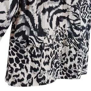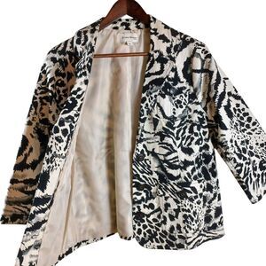 Studio Works Petite L Linen Blend Animal Blazer Jacket Black Tiger Safari Office