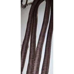 There are double straps that are woven, with the wood accents. The strap drop is 12.5".