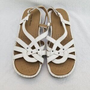 ✅Studio Works SW-PITCH White Strappy Slingback Sandals/Shoe Womens 9.5M STAINING
