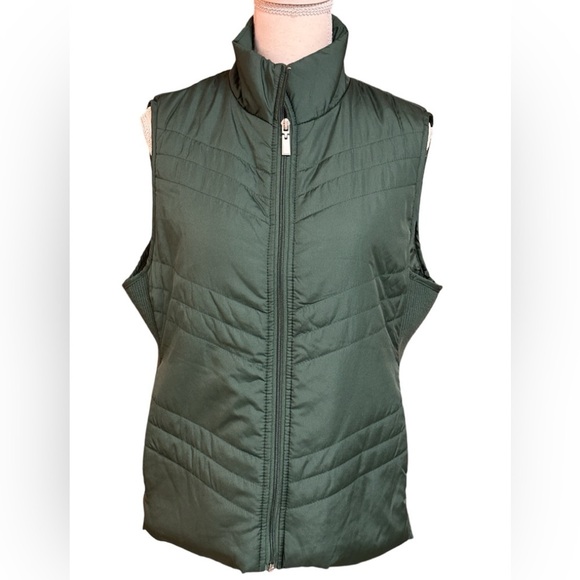 Studio Works Sport Green Side Stretch Full Zipper Puffer Vest Cold Weather Med