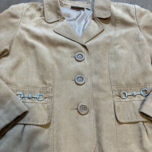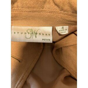 Studio Works Tan/Brown Three Button Faux Suede Waist-Length Blazer Jacket Sz 4P
