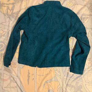 Chic turquoise jacket with a sleek zip front. Ideal for casual wear.