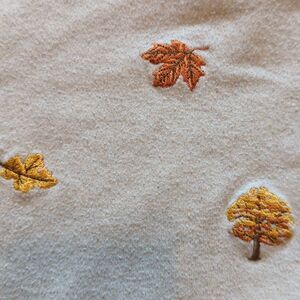 nice and comfy, gold leaves for fall! good vintage condition, tiny pills here and there