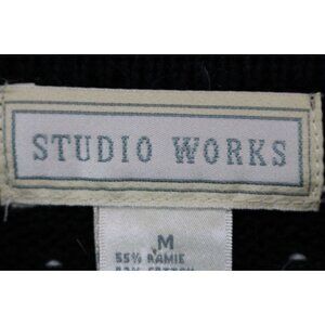 Studio Works Vintage Norwegian Ramie Rabbit Blend Sweater-Size Medium-Full Zip. Item is in Great Condition. The material is 55% Ramie, 42% Cotton, 2% Other Fibers and 1% Rabbit Hair. Laying flat measuring armpit to armpit it is 21.5'' and 26'' in length.