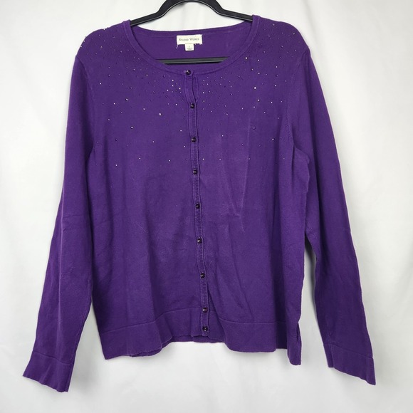 Studio Works Womens Cardigan Button Down Sweater Rhinestones Purple Size Large