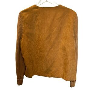 Excellent condition. Lined. Faux Suede with sweater sleeves. Faux pockets. Sweater Jacket.