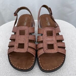 Studio Works Women's Patty Sandals 9.5 Antique Tan Hook & Loop Closure New
