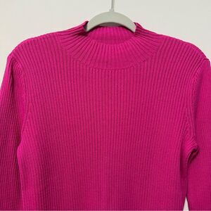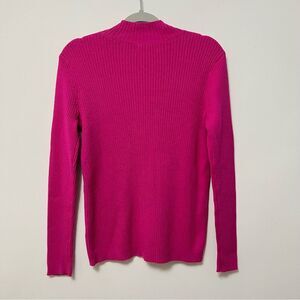 Vibrant fuchsia mockneck sweater. Ribbed texture. Long sleeves. Perfect for layering.