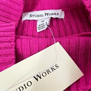 Studio Works Womens Ribbed Mockneck Sweater NWT Size Medium Fuchsia Pink Y2K