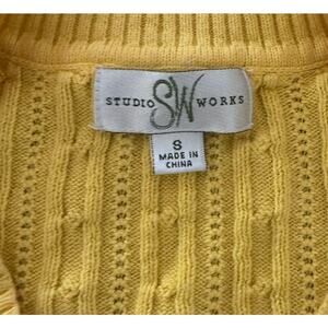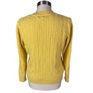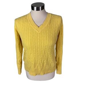 Studio Works Womens Small V Neck Yelllow Cable Knit Sweater Cotton