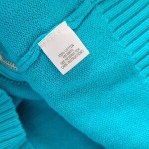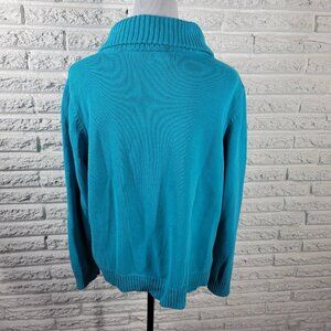 Studio Works Womens Sweater 2X Cardigan Blue Zip Cotton Turtleneck SWE85E