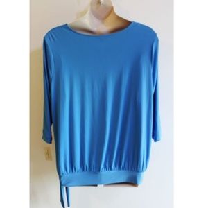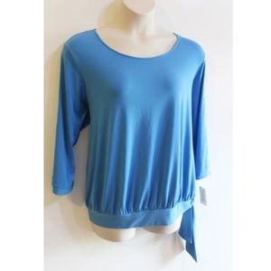 Studio Works Women's Top Plus Size 3X Blue Side Tie 3/4 Sleeves