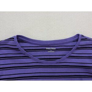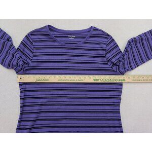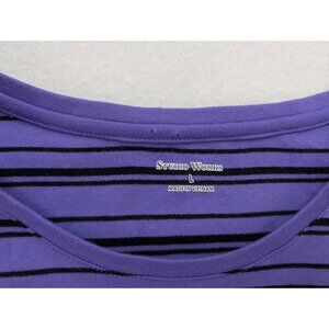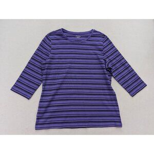 Studio Works Women's T-shirt Top Size L Purple Black Striped 3/4 Sleeve