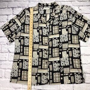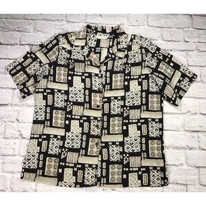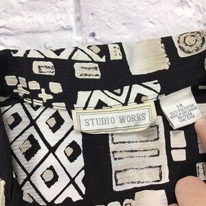 Studio Works Womens Vintage Button Front Short Sleeve Blouse Abstract Print.