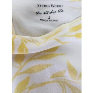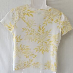 Studio Works Yellow and White Hibiscus Floral Blouse Women's size Small