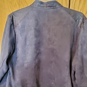 Studio works faux suede and leather suit jacket, shell 100 % polyester, lining 100% polyester, sz xl, machine wash cold, tumble dry low, in like new condition, smoke free and pet free home