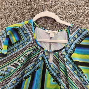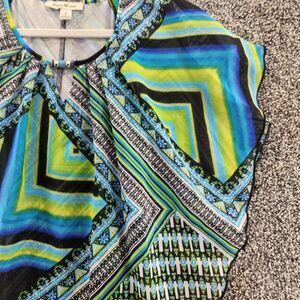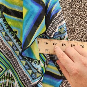 The Studio Works medium blue multicolor short sleeve blouse is a versatile and comfortable top for women. Made by Studio Works, this blouse features a regular fit and a short sleeve design, perfect for everyday wear. The multicolor design adds a fun and vibrant touch to the basic style, making it a great addition to any wardrobe. This blouse is available in size M, catering to women looking for a stylish and comfortable option for their everyday outfits.