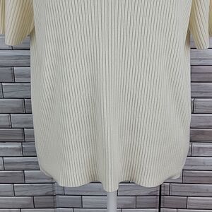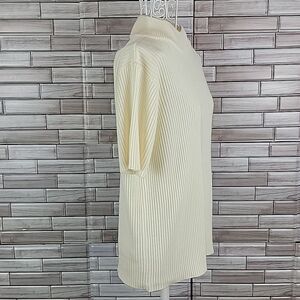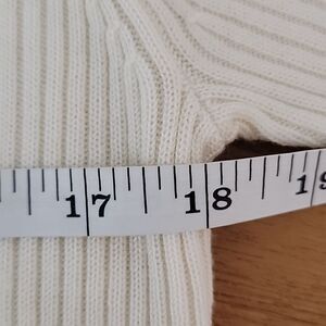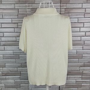 Vintage 100% Acrylic ribbed knit mock turtleneck in a soft stretchy ribbed knit fabric with short sleeves and a straight hemline. Great pre-owned condition.
