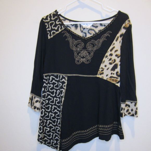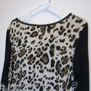 Studio X womens hand made beaded leopard animal print top-Sz M