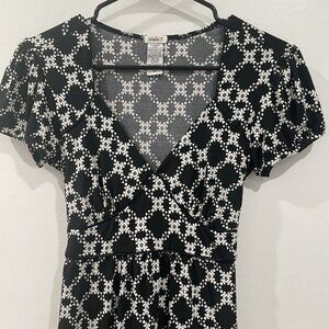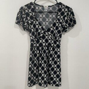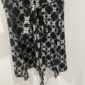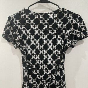 Studio Y Black White Stretchy Waist Tie Short Sleeve Blouse Size Medium M