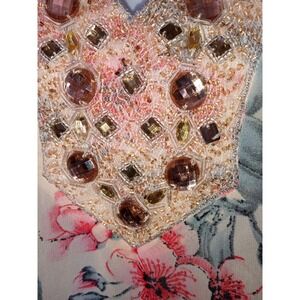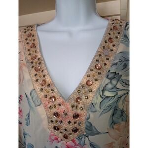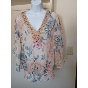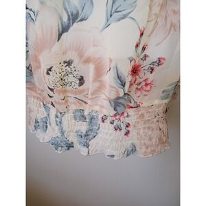 Studio Y Flutter Sleeve Blouse Size Medium Peach Floral V-Neck Coquette Gems